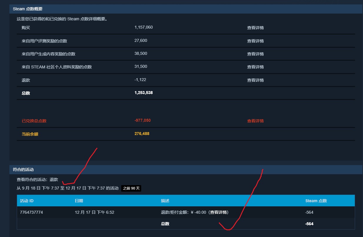 看我的退款的Steam历史点数就知道,我没什么退款历史!!!