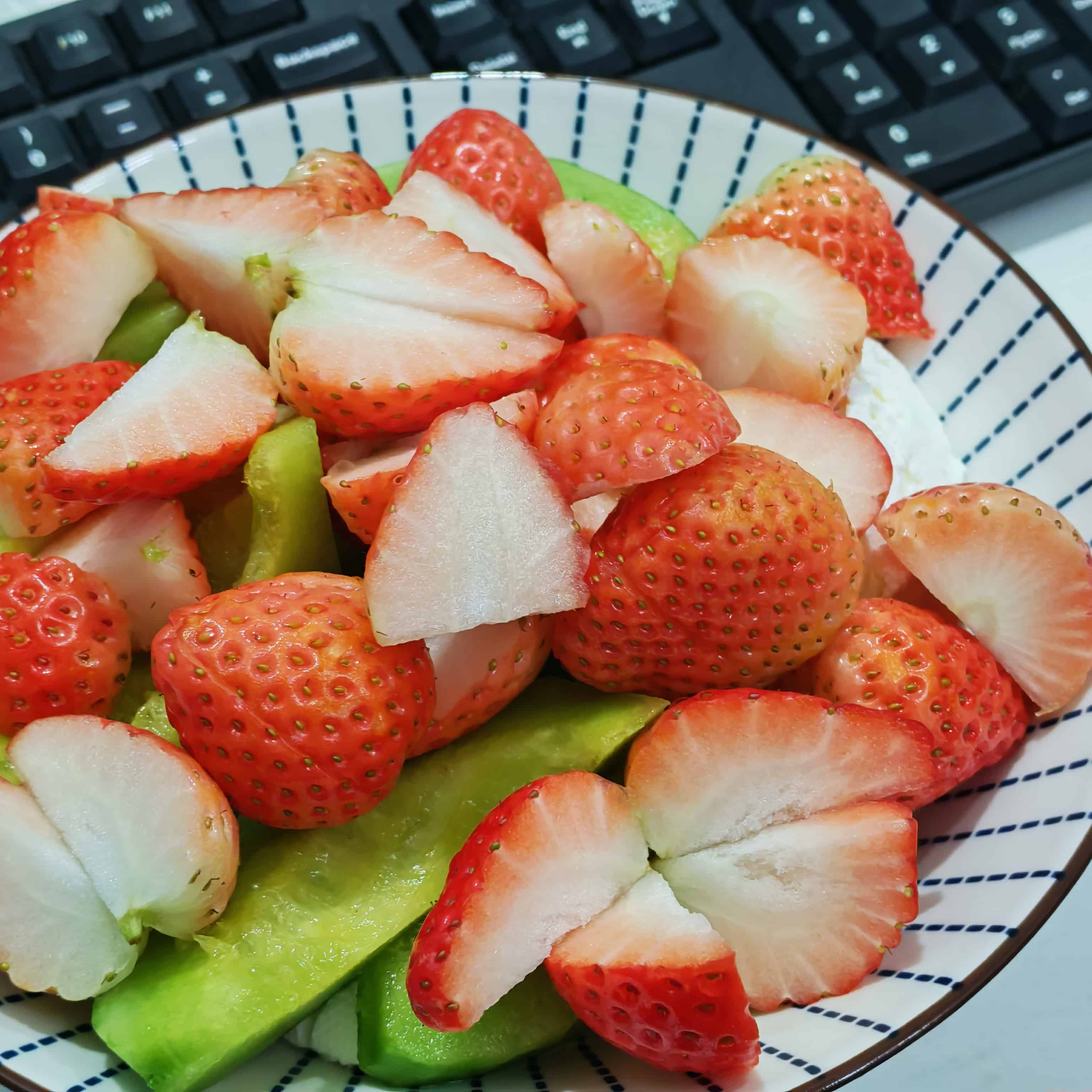 结果发现买的水果有点多...得赶紧吃了。正好买的酸奶不是很好。