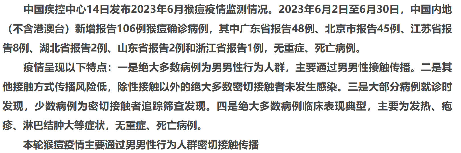 国内没有猴痘大规模爆发,于是性传播成为主要途径,最新一轮绝大多都是男同。