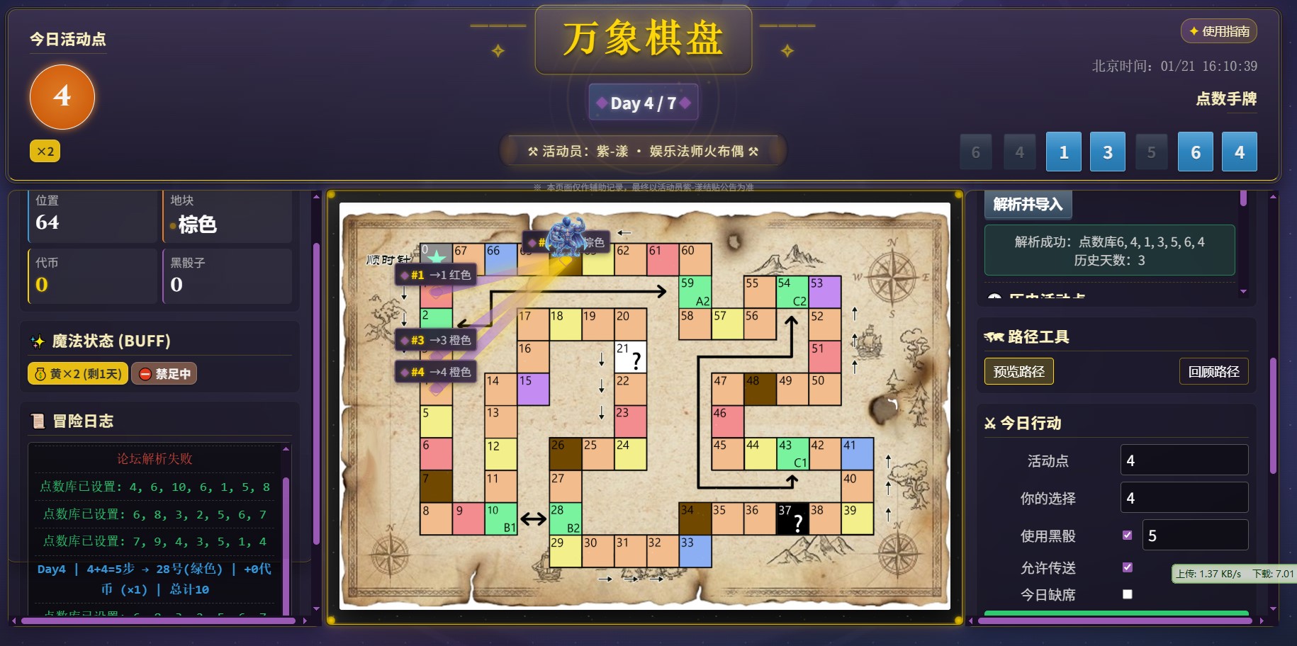 (5)输入今日的活动点,这时候发现预览路径的按键解锁,点击,这时候地图就会出现路径,根据规则和手牌进行推演