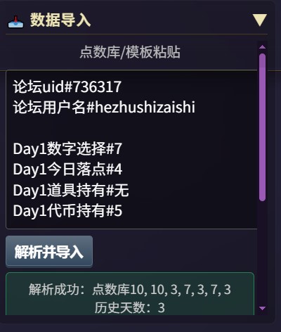 (4)点击确认导入,这时候就会在后台进行“预演”,就是重新算每一天的内容,看看计算结果是否与实际一致,如果不一致,可能是内置规则不完善,但是我测试10个,8个能够正常解析(能够解析黑骰子哦