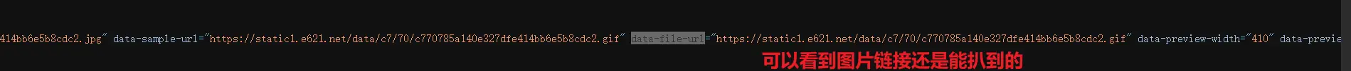 众所周知,这种页面的图片肯定是循环堆砌相同元素呈现的,也就是只要用上面的正则匹配一下,就能获得这个页面的所有地址