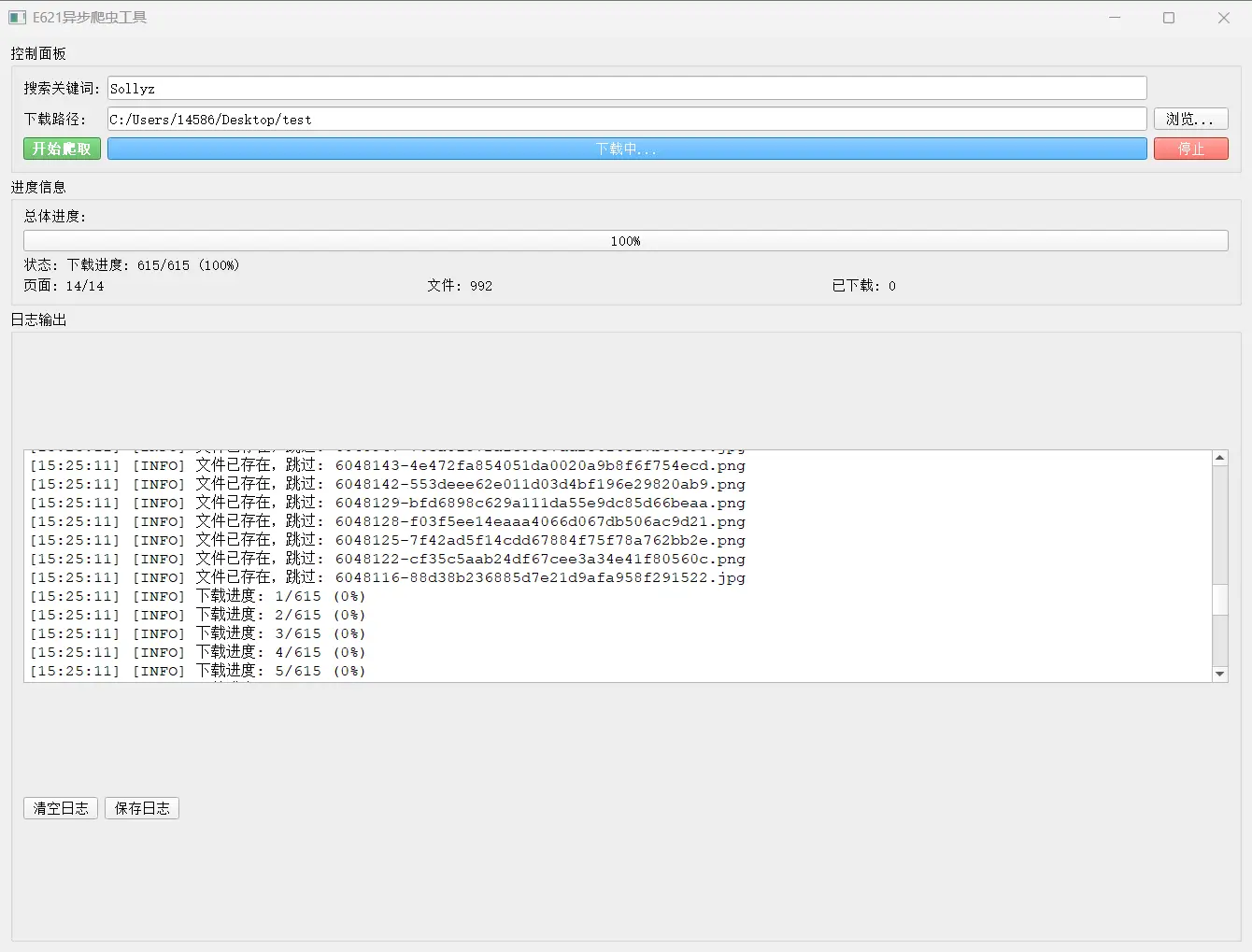 最终效果如图,如果重复下载的话会自动跳过这一条: